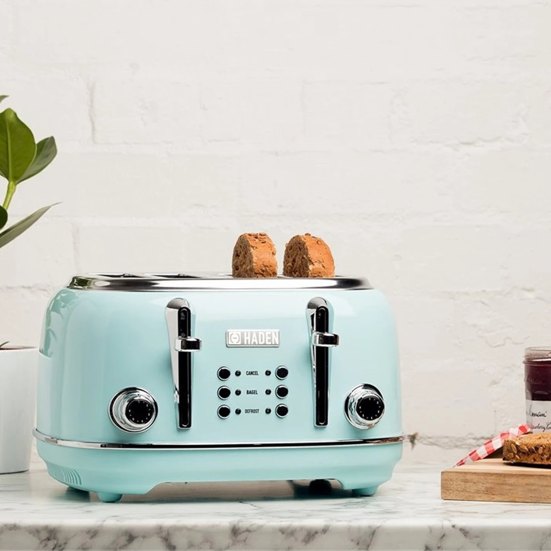Introducing the stylish Heritage toaster by Haden. This beautiful 4-slice toaster features convenient cancel/defrost/reheat settings, self-centering function, and a removable crumb tray – as well as a beautiful hue that’s sure to brighten up your day.