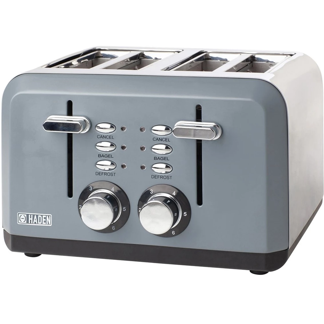 Sophisticated & sleek, upgrade your kitchen with the Perth Toaster, by Haden. This elegant toaster is stylish in design, it features convenient cancel/defrost/bagel reheat settings, adjustable browning control and toasting time, self-centering function.