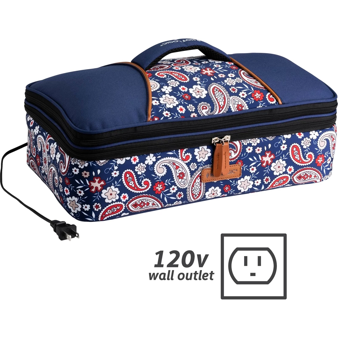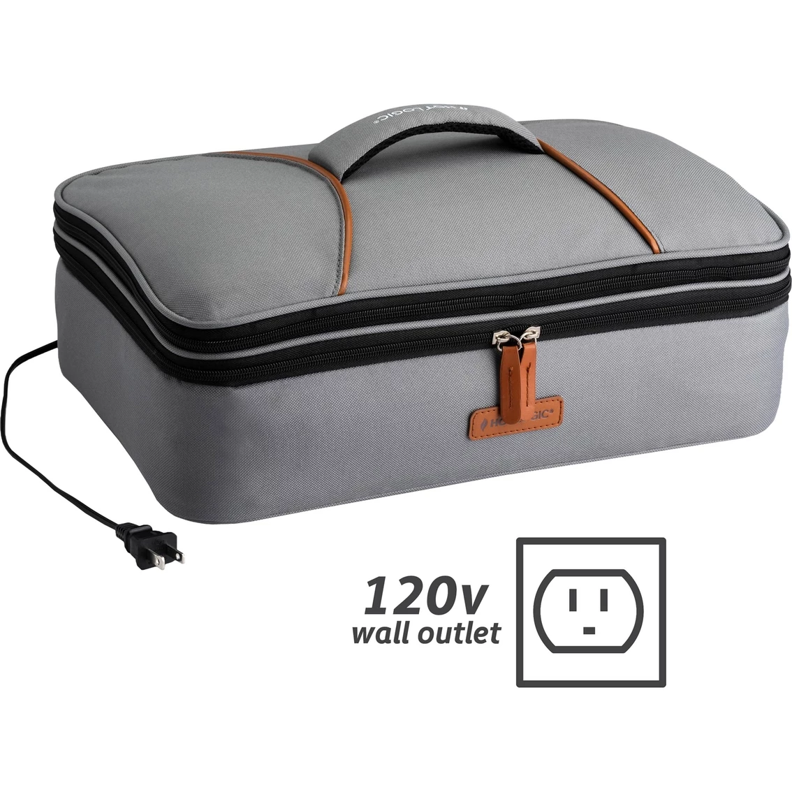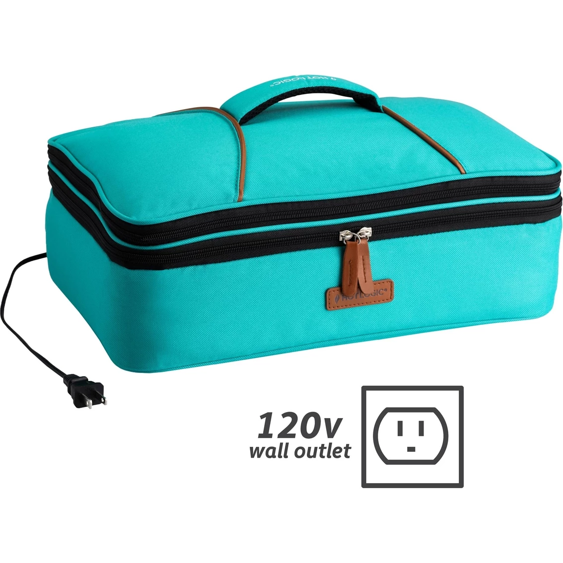 This family-sized lunch bag and portable oven/food warmer combo from Hot Logic is ideal for preparing and transporting meals for a group, whether it’s a party, gathering or potluck. The bag unzips and expands into a handy tote for carrying non-perishable food items, tableware and accessories, and the patented HeatDeck brings your food to the ideal temperature, holding it there until you’re ready. It evenly cooks or reheats fresh or frozen meats and vegetables without burning or drying your food. There’s no monitoring needed; just place your meal inside your personal unit, plug it in and go about your day.