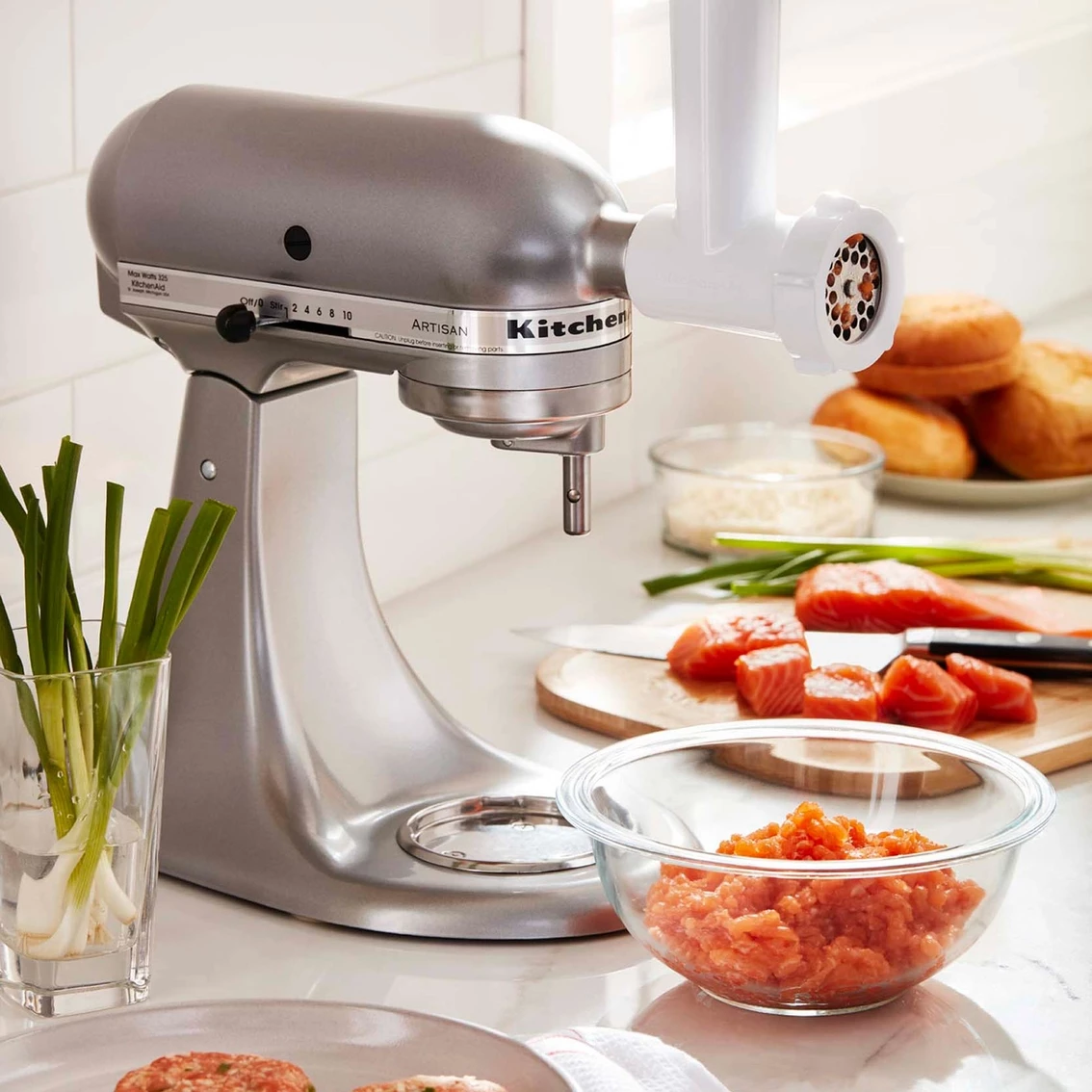 Transform ingredients for wholesome, fresh recipes. Using pre-packaged foods can leave you with little control over the ingredients included, and limited ability to be creative. The KitchenAid Food Grinder allows you to make from scratch with fresh, wholesome ingredients, as well as experiment with adding different flavors such as parsley, garlic, rosemary and more.