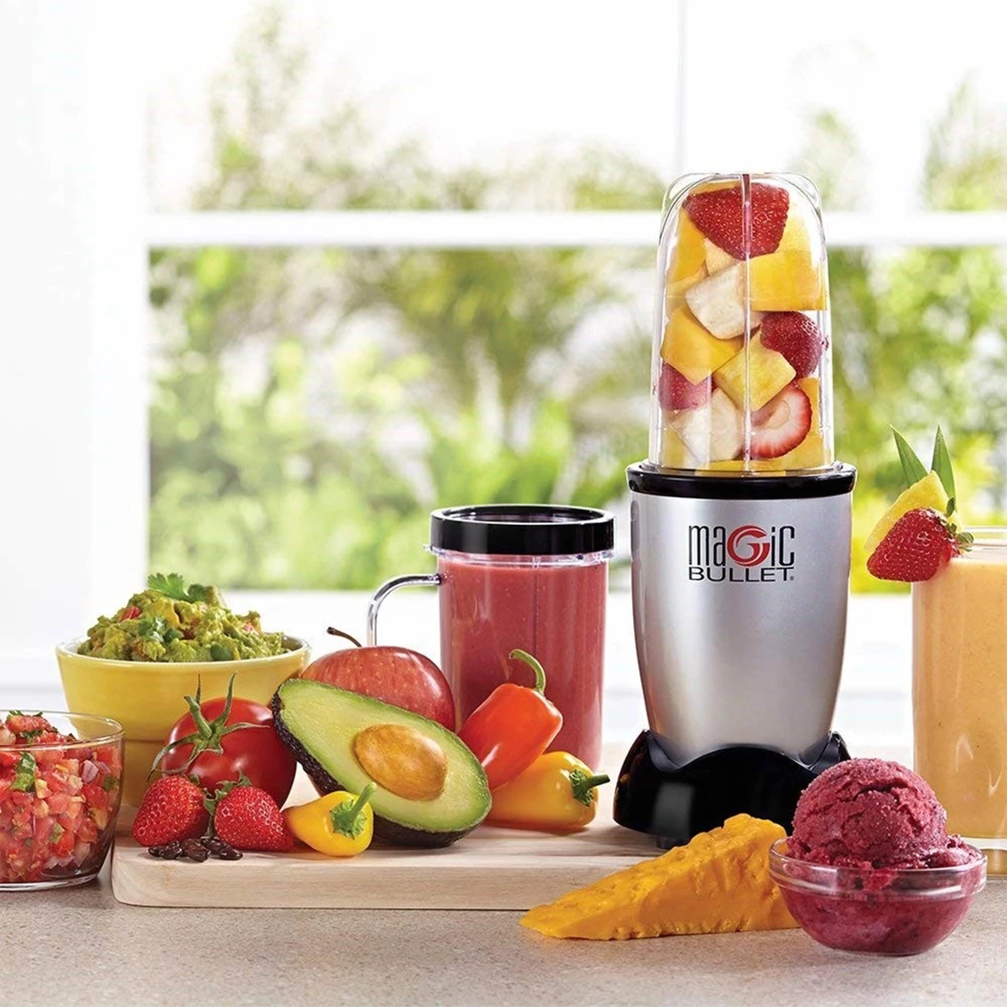 The personal, versatile countertop magician that works like magic, with the Magic Bullet you can chop, mix, blend, whip, grind and more, all in just 10 seconds or less, for the fastest meals ever. Includes high torque power base common to all attachments; tall microwaveable cup to mix, cook and store.