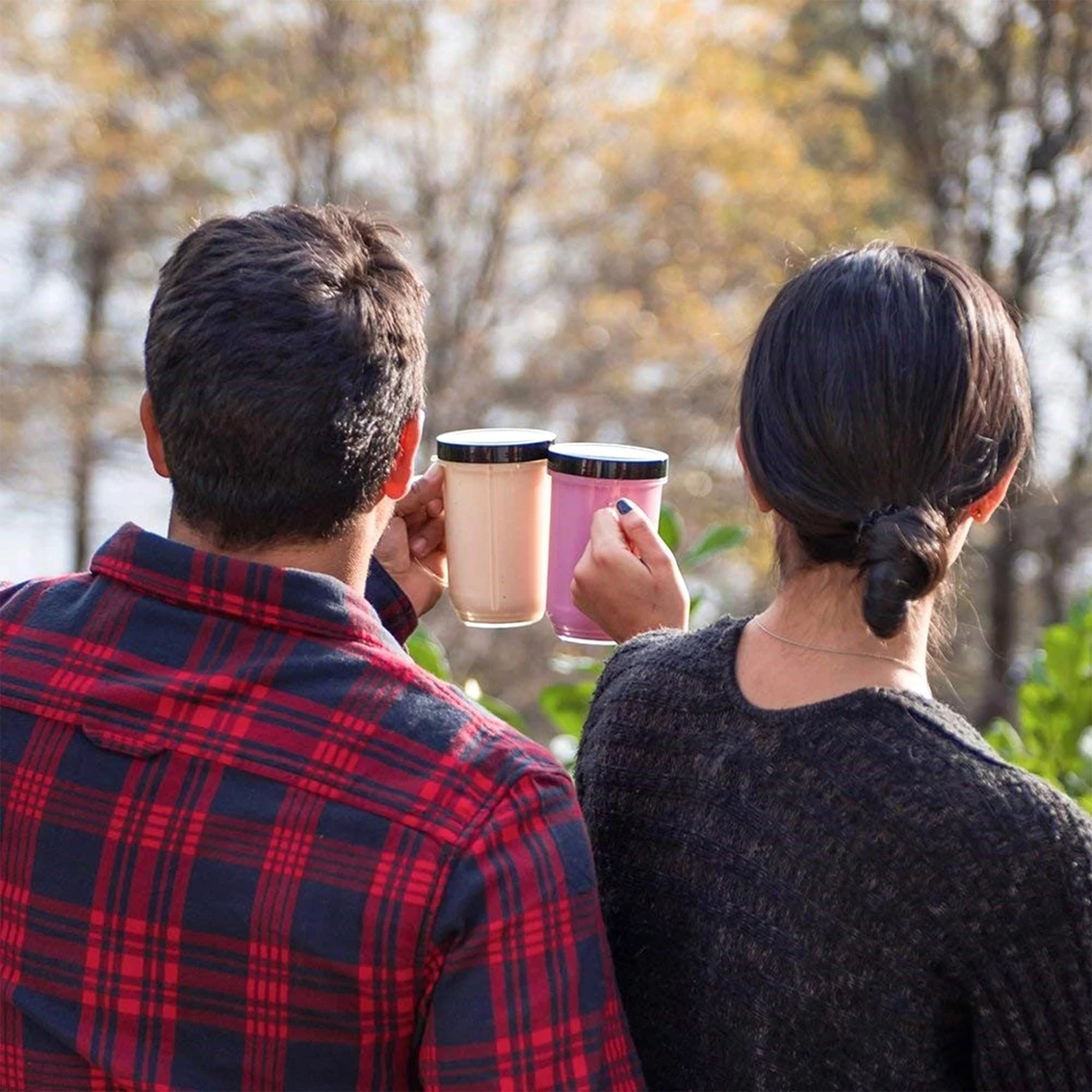 ingredients; 2 party mugs with comfort lip rings to blend and serve frozen party drinks and smoothies in the same mug; stainless steel cross blade for chopping, grating, grinding and blending and 3 stay fresh re-sealable lids that fit right onto the tall cups and party mugs to keep leftovers fresh. Handy Magic Bullet 10 Second Recipes Book. Model: MBR1101.