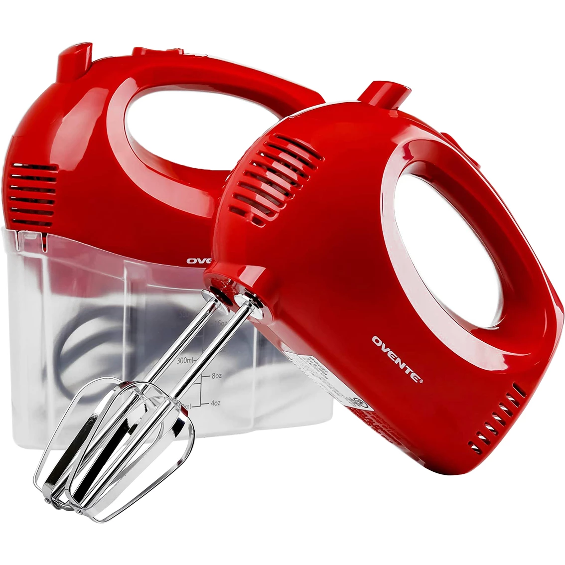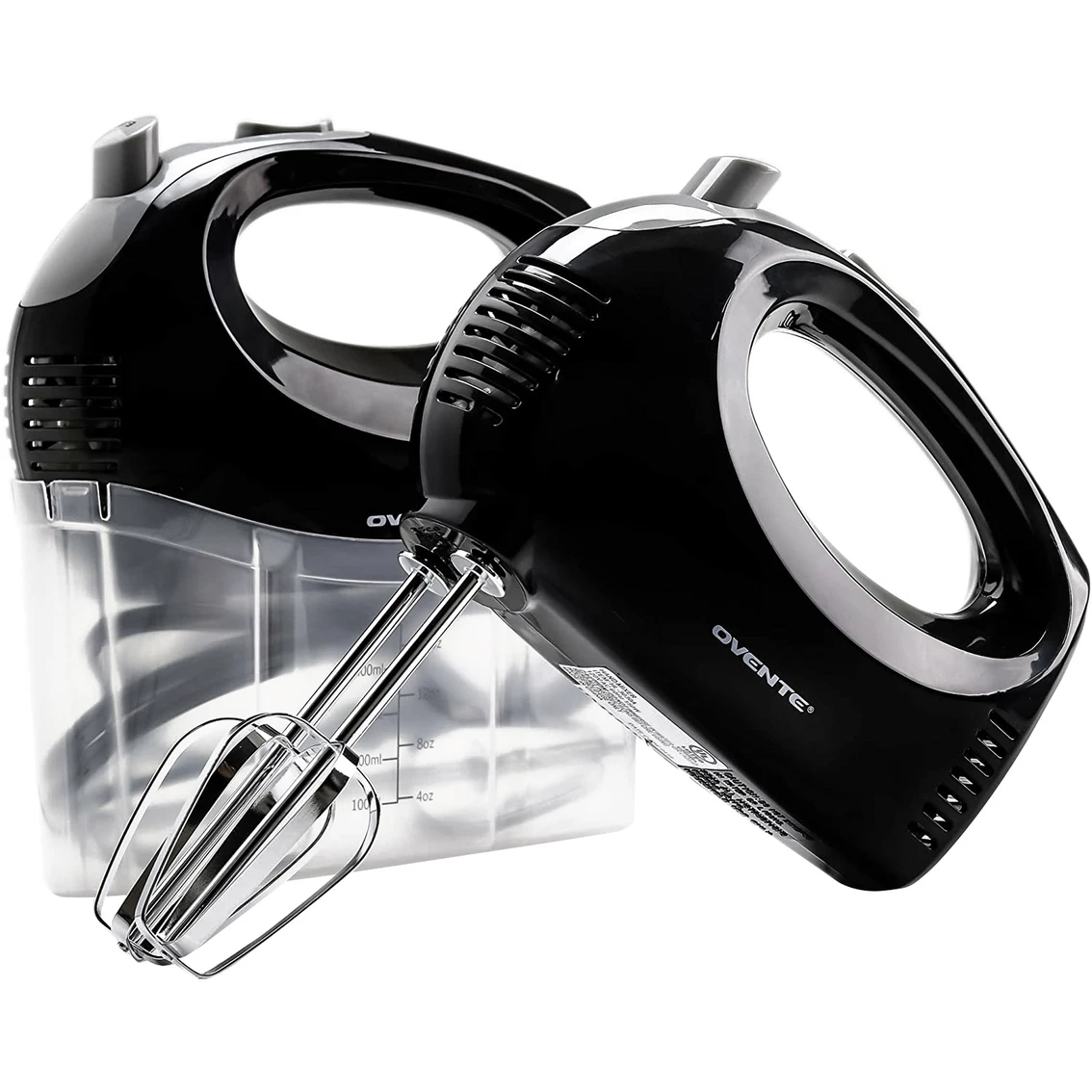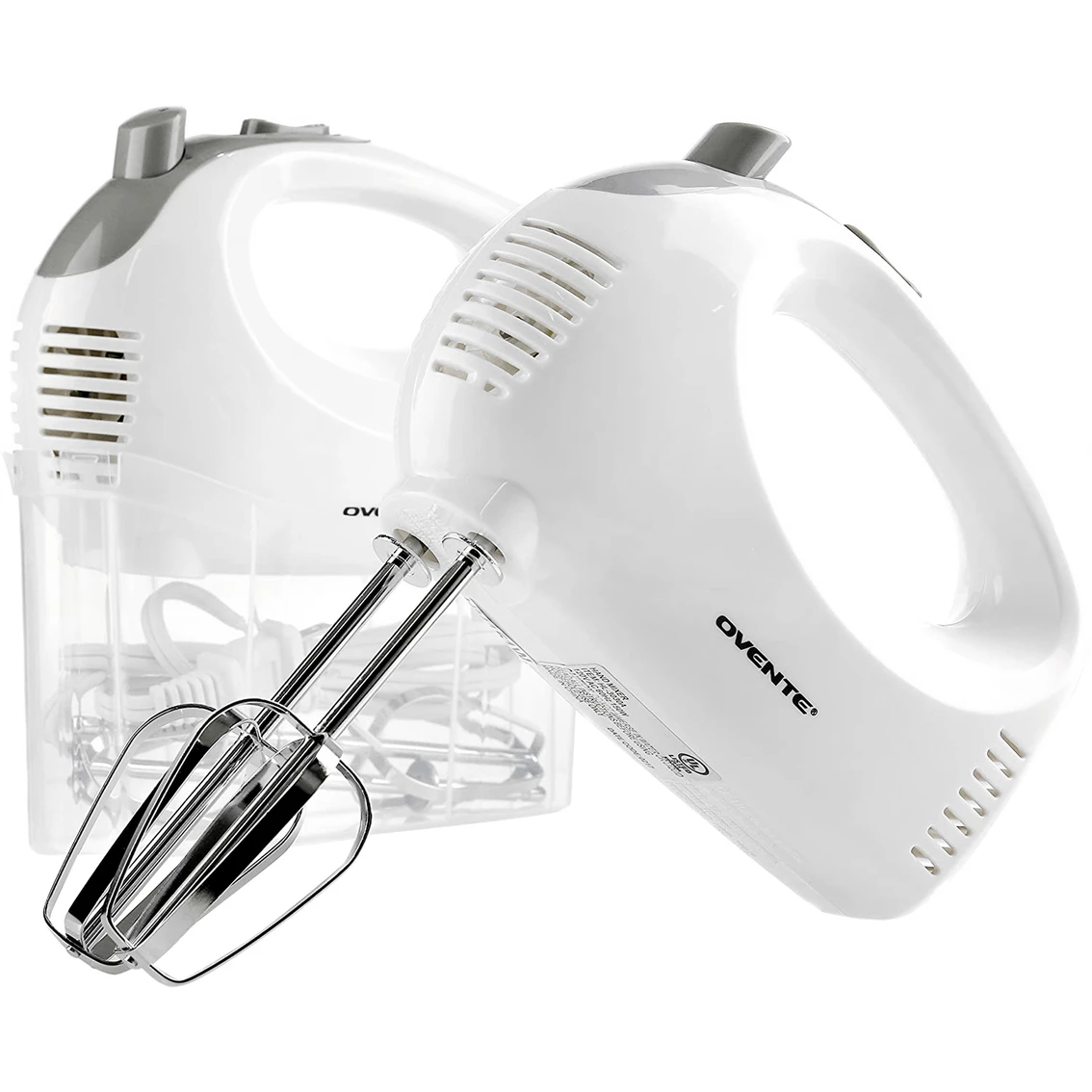 From rich mini cheesecakes with ultra-fluffy whipped cream to creamy mashed potatoes, the dreamy possibilities are endless with this handy Ovente Electric 5-Speed Ultra Hand Mixer kitchen tool. Its ergonomic design makes the body easy to grip and control with precision. Itβs lightweight (1.8 lbs), so using your mixer never becomes a chore. Its 150-Watt motor is powerful enough to mix a multitude of fresh ingredients together with ease. Itβs also a breeze to clean and store. All parts are dishwasher safe. After cleaning, place the power cord and chrome beaters into the sleek storage case, then snap the mixer on top to properly secure it shut. How easy is that? Comes with 2 chrome beater attachments plus a FREE bonus Snap-on Case that holds everything (mixer, beaters, power cord) neatly in one place. Model:. HM151B.