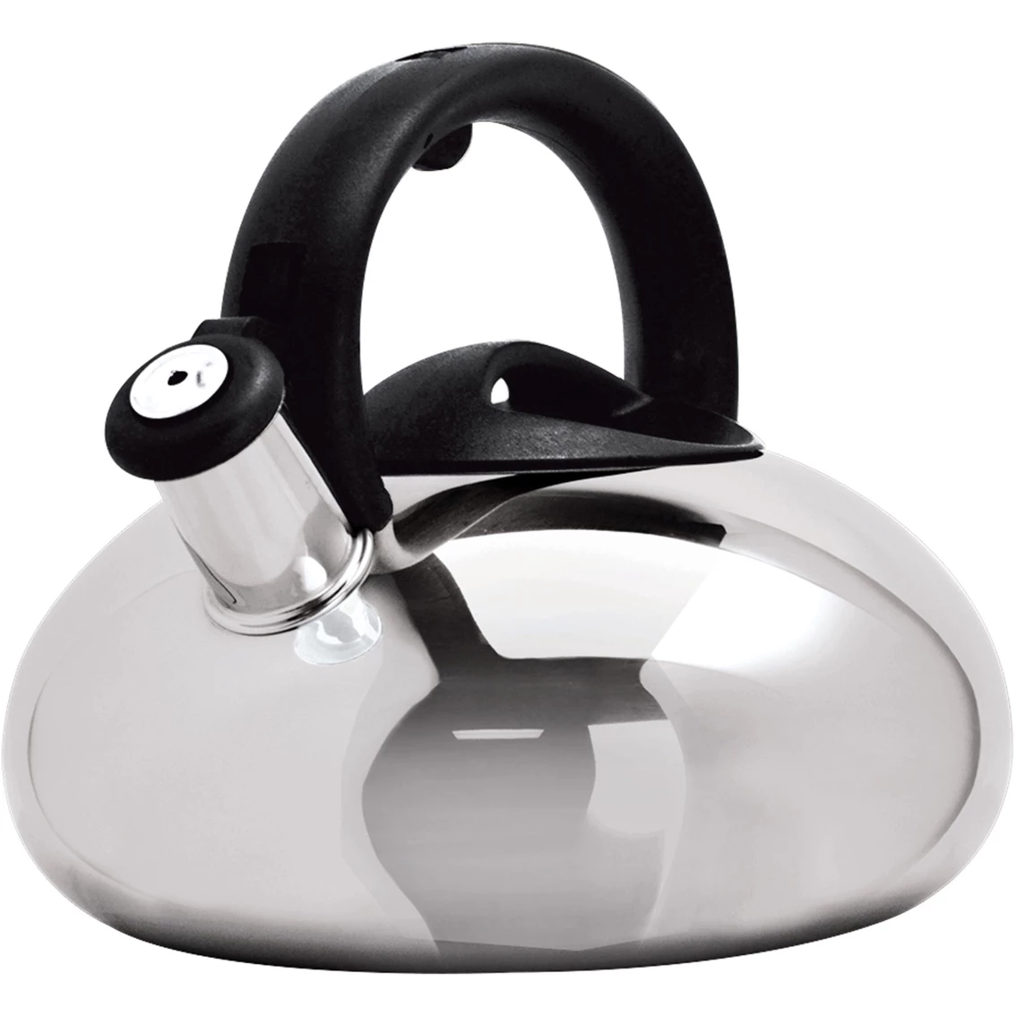 Primula’s 3 Qt. Catalina Whistling Tea Kettle is crafted of polished stainless steel with a seamless bottom. The stainless steel design is as functional as it is beautiful — it heats up quickly and guards against rust and oxidation. The silver appearance provides a striking contrast with the black lid and handle to create a beautiful stylish design. This traditional shape has a removable lid with heat-resistant stay cool black grip and a whistling spout with an easy pull trigger located on the handle for even pouring. The looped handle is made of phenolic, which is used for high-temperature stability. This added feature helps keep your handle cool for safe comfortable pouring. The Catalina Stainless Steel Kettle emits a pleasing whistling sound when the water reaches a boil. The generous 3-Qt. capacity is great for entertaining and serving a crowd. Model: PTK-6130.