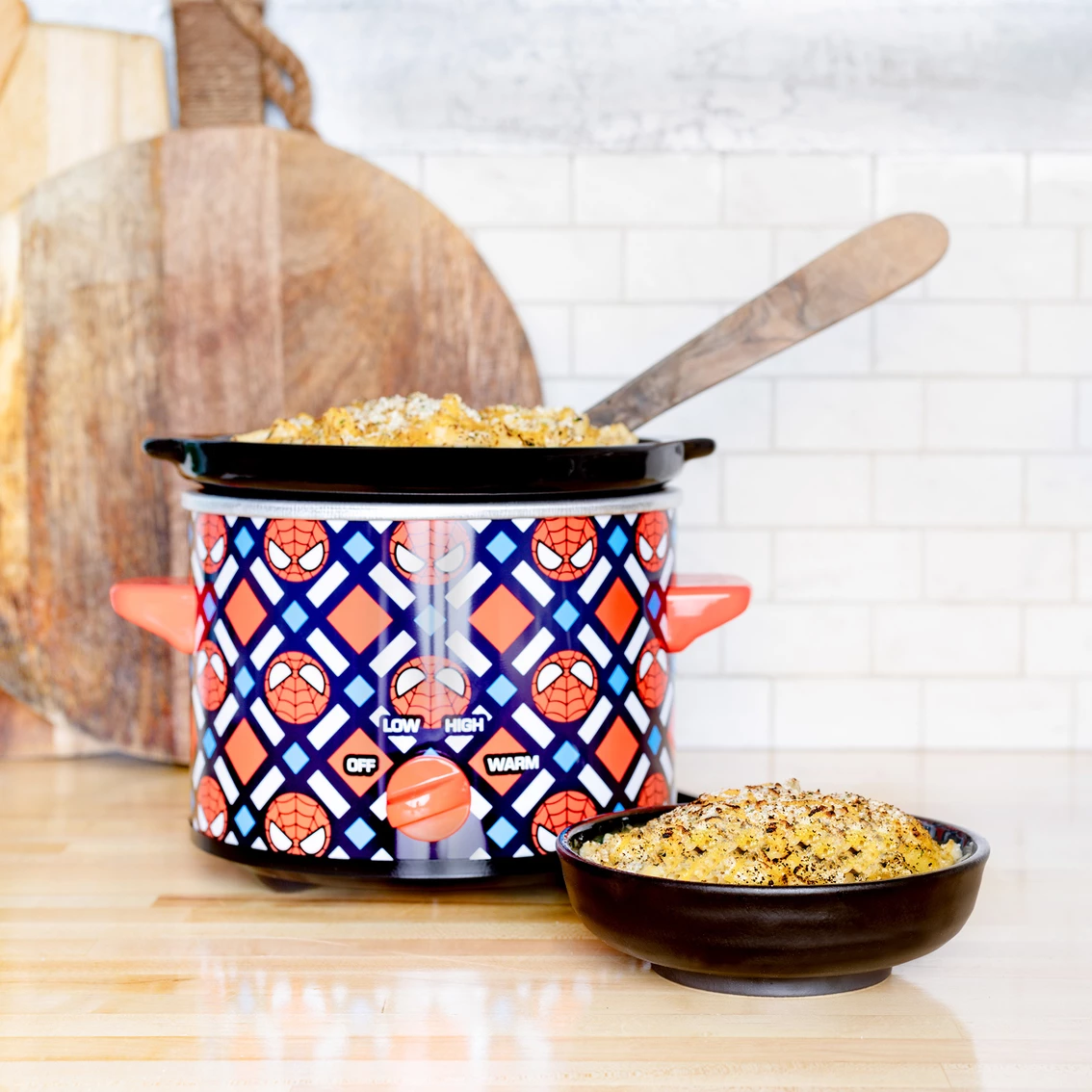 Cook up some fun with this super-cute, super-useful 2-Quart slow cooker. Featuring your friendly neighborhood Spider-Man, youβll smile every time you throw in your favorite ingredients. The removable stoneware insert makes serving and cleanup a breeze.